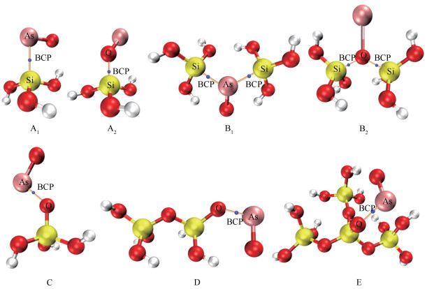 • To understand the enrichment characteristics of trace As in fly ash, the adsorption mechanism of AsO, a typical arsenic oxide, in SiO2, the main component of fly ash, was investigated by using density functional theory; energy calculation, AIM theory, Mulliken charge analysis and Localized Orbital Locator(LOL) color map were performed on the optimized adsorption configuration, in order to analyze the interaction between AsO and SiO2. The results show that the adsorption energy of AsO on the defect sites of amorphous SiO2 is higher than 50 kJ/mol, typical for the configuration of chemical adsorption. The bonds of As-Si, Si-O and As-O formed at the active defect sites of the amorphous SiO2 have high strength, belonging to the covalent bond; that is, the interaction between SiO2 and AsO is covalent.