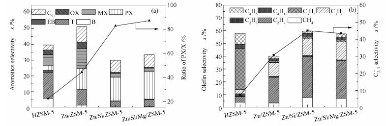 ZHU X L, ZHANG J Y, CHENG M, WANG G W, YU M X, LI C Y. Methanol aromatization over Mg-P-modified[Zn, Al]ZSM-5 zeolites for efficient coproduction of para-xylene and light olefins[J]. Ind Eng Chem Res, 2019,58(42):19446-19455.