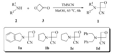 Citation: Liu Bin, Tong Hongjuan, Zhu Zhoujing, Zhang Yanmin, Guo Hui. Synthesis of 3-Secondary Amine Substituted Oxetane-3-Carbonitrile Derivatives[J]. Chemistry, ;2020, 83(10): 946-950. shu