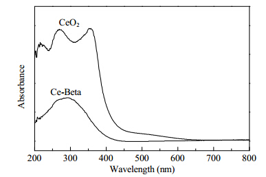 To investigate the coordination behavior of the incorporated Ce species, a diffuse reflectance UV-Vis spectrum was obtained for the as-synthesized Ce-Beta sample. As shown in Fig. 3, the Ce-Beta zeolite sample has a main strong absorbance maximum at ~290 nm in strong contrast to the CeO2 reference sample. According to the literature [5, 20], this band may be attributed to a ligand-to-metal charge transfer from O2− to Ce4+. Therefore, incorporated Ce is present in a highly isolated tetrahedrally coordinated form and it is generally accepted to be the catalytically active Ce species during liquid-phase oxidation reactions.