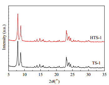 The results of XRF analysis of both TS-1 and HTS-1 are summarized in Table S1. Both samples consist of SiO2 and TiO2, with similar SiO2/TiO2 ratios, demonstrating that the dissolution-recrystallization process of TS-1 has no significant effects on its composition. Fig. S1 shows XRPD patterns of TS-1 and HTS-1, which correspond to that of a typical MFI-type zeolite [1]. The relative crystallinity of both TS-1 and HTS-1 is high (Table S1), as calculated using the method described in Ref. [2].