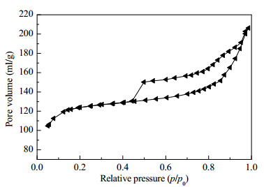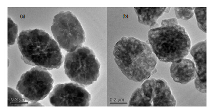 TEM shows the presence of large amount of mesopores in the HTS-1 sample compared to the TS-1 sample (Fig. S2). This indicates that the post-treatment of TS-1 has an impact on the mesoporpous structure. Fig. S3 shows the N2 adsorption-desorption isotherm of HTS-1. It is observed that the isotherm at p/p0 = 0.4-1.0 exhibits hysteresis and is of the Type IV isotherm caused by mesopores [3]. The BET surface areas and pore volumes of TS-1 and HTS-1 are summarized in Table S1. Although the BET surface area of HTS-1 and the micropore volume are slightly smaller than those of TS-1, the mesopore volume of HTS-1 is significantly larger than that of TS-1.