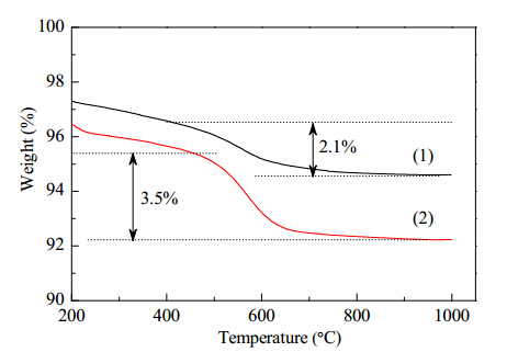 To obtain more information through this cracking reaction, the product distributions over HSZs-120 and conventional ZSM-5 (Fig. 8(b) and (c)) were analyzed in detail. In the cracking reaction of TIPB, possible products include propene (gas), diisopropylbenzene (DIPB), isopropylbenzene (IPB), and benzene. Their relative contents depend on the cracking degree of TIPB with the sequential depletion of isopropyl groups from the benzene ring. For ZSM-5-type catalysts, because of the shape-selectivity property of uniform micropores, p-DIPB is the major component among three kinds of isomers of p-, m-, and o-DIPB. When the microporous ZSM-5 catalyst was used, because of the large molecular size of TIPB and pore blocking by cokes, the reactants are restricted significantly in accessing active sites in the microporous channels. Thus, p-DIPB was always the major component. At the end of the 10 h time-on-stream test, the p-DIPB selectivity was larger than 85% and the portion of the deeply cracking product of benzene was lower than 5%. However, when HSZs-120 was used, at the beginning of the reaction, benzene was the major product and its selectivity was as high as ~60%. Simultaneously, the selectivity to p-DIPB was much lower at 35%. By extending the time-on-stream, the benzene content decreased gradually and the p-DIPB selectivity increased accordingly, whereas the other product content remained almost unchanged. This indicates that part of the active sites deactivated. A similar product distribution was also observed over HSZs-240 (Fig. 8(d)). These results demonstrate that the introduction of mesoporosity in microporous ZSM-5 crystals not only increases catalyst reactivity, but also deepens the cracking reaction. The HSZs-120 and conventional ZSM-5 catalysts were analyzed by thermogravimetry. As shown in Fig. 9, from 300 to 800 °C, the mass loss of ZSM-5 catalyst is ~2.1%, whereas that of HSZs-120 is ~3.5%. Compared with conventional microporous zeolites, HSZs-120 therefore possesses a higher coke-tolerant capability. As mentioned previously, since the molecular size of TIPB is larger than the micropore size of ZSM-5, most reactions could only occur on the limited external surface or near the micropore mouth of the ZSM-5 crystals [3, 4]. Thus, even relatively little coke formation would lead to rapid catalyst deactivation. However, for hierarchically structured ZSM-5 zeolites, the auxiliary mesoporous structures not only increase the external surface area and consequently the amount of more accessible active sites for bulky TIPB molecules, but also help to shorten the molecular diffusion path and the residence time of reactants, intermediates, and products in the micropore channels. As a result, the possibility of coke formation near the micropore mouth, and the detrimental effect of coke formation in the mesoporous structures on catalyst performance are decreased significantly.