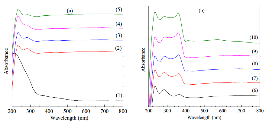 Figure 5(a) and Figure 5(b) depict the UV-Vis DRS spectra of the Zn-containing HZSM-5 zeolites prepared by ion exchange and physically mixing, respectively. Three main absorption bands can be identified at 368, 275, and 220 nm in the Zn-containing samples. The band at 368 nm corresponding to the band-gap width of macrocrystalline ZnO [24] appeared in the spectra of Zn(PM)/HZSM-5 prepared by physically mixing. The band at 275 nm attributed to ZnO cluster with a diameter of 10 Å [25, 26] was observed in all the Zn-containing samples. This indicated the presence of ZnO clusters located in the channels of these zeolites. On the other hand, the absorbance at 220 or 195 nm was evident in all the Zn-containing HZSM-5 zeolites, which was ascribed to the Zn species strongly interacting with the parent HZSM-5.