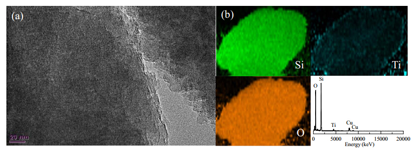 Fig. 3(a) shows a representative FE-TEM image of Ti-mβ-S2. The clear lattice fringes show the high crystallinity of the synthesized materials and the clear dark-to-bright contrast confirms the penetration of mesoporous structures within the microporous crystals. Furthermore, energy-dispersive X-ray spectroscopy (Fig. 3(b)) and the corresponding element mappings of Ti-mβ-S2 indicate that the post-incorporated Ti atoms are homogeneously distributed in the synthesized materials.