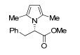 (S)-2-(2, 5-二甲基-1H-吡咯-1-基)-3-苯丙酸甲酯(2e)[26]:黄色油状物; ee=93% [HPLC测定, 手性AD-H柱[V(正己烷):V(异丙醇)=80:20, 1.0 mL/min, λ=254 nm]; Rf=0.38 [V(石油醚):V(乙酸乙酯)=10:1]; [α]D25-155 (c=1.0, CHCl3); lH NMR (500 MHz, CDCl3)δ: 1.99 (s, 6H), 3.20 (dd, J=10.0, 14.0 Hz, 1H), 3.57 (dd, J=4.8, 10.0 Hz, 1H), 3.78 (s, 3H), 4.79 (dd, J=4.8, 10.0 Hz, 1H), 5.76 (s, 2H), 6.91~6.93 (m, 2H), 7.21~7.23 (m, 3H).