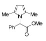 (RS)-2-(2, 5-二甲基-1H-吡咯-1-基)-2-苯乙酸甲酯(2f):黄色固体; Rf=0.35 [V(石油醚):V(乙酸乙酯)=15:1]. m.p. 73.0~74.9 ℃; [α]D25-10 (c=1.0, CHCl3); lH NMR (500 MHz, CDCl3) δ: 2.14 (s, 6H), 3.91 (s, 3H), 5.94 (s, 2H), 6.13 (s, 1H), 7.11~7.13 (m, 2H), 7.35~7.42 (m, 3H); 13C NMR (125 MHz, CDCl3) δ: 13.3, 52.8, 60.3, 106.8, 127.3, 127.9, 128.5, 128.9, 135.6, 170.1; FT-IR (KBr) v: 2951, 1752, 1522, 1499, 1399, 1301, 1205, 1010, 763, 697 cm-1; ESI-MS m/z: 244 [M+H]+; HRMS (ESI) calcd for C15H18NO2 [M+H]+ 244.1259, found 244.1244.