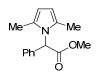 (RS)-2-(2, 5-二甲基-1H-吡咯-1-基)-2-苯乙酸甲酯(2g):黄色固体; Rf=0.33 [V(石油醚):V(乙酸乙酯)=15:1]. m.p. 71.4~72.8 ℃; [α]D25+8 (c=1.0, CHCl3); lH NMR (500 MHz, CDCl3) δ: 2.11 (s, 6H), 3.89 (s, 3H), 5.91 (s, 2H), 6.09 (s, 1H), 7.08~7.09 (m, 2H), 7.32~7.39 (m, 3H); 13C NMR (125 MHz, CDCl3) δ: 12.9, 52.5, 60.0, 106.4, 126.8, 127.6, 128.2, 128.5, 135.3, 169.8; FT-IR (KBr) v: 2960, 1740, 1512, 1480, 1362, 1225, 1020, 773, 685 cm-1. ESI-MS m/z: 244 [M+H]+; HRMS (ESI) calcd for C15H18NO2 [M+H]+ 244.1259, found 244.1249.