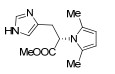 (S)-2-(2, 5-二甲基-1H-吡咯-1-基)-3-(1H-咪唑-4-基)-丙酸甲酯(2i)[28]:棕色油状液体; ee=85% [HPLC测定, 手性OD柱[V(正己烷):V(异丙醇)=90:10, 1.0 mL/min, λ=254 nm]; Rf=0.43[V(石油醚):V(乙酸乙酯)=20:1]. [α]D25-60.3 (c=0.5, CHCl3); lH NMR (500 MHz, CDCl3) δ: 2.06 (d, J=6.3 Hz, 6H), 3.18 (dd, J=9.7, 15.1 Hz, 1H), 3.58 (dd, J=5.6, 15.1 Hz, 1H), 3.78 (s, 3H), 4.96 (dd, J=5.6, 9.4 Hz, 1H), 5.79 (s, 2H), 6.60 (s, 1H), 7.47 (s, 1H).