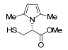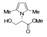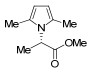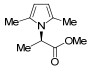 (R)-2-(2, 5-二甲基-1H-吡咯-1-基)丙酸甲酯(2b):黄色固体; ee > 99% [HPLC测定, 手性OD柱[V(正己烷):V(异丙醇)=95:5, 1.0 mL/min, λ=254 nm]; Rf=0.38 [V(石油醚):V(乙酸乙酯)=10:1]. m.p. 35.5~37.0 ℃; [α]D25+133 (c=1.0, CHCl3); lH NMR (500 MHz, CDCl3) δ: 1.70 (d, J=7.3 Hz, 3H), 2.25 (s, 6H), 3.80 (s, 3H), 4.91 (q, J=7.3 Hz, 1H), 5.85 (s, 2H); 13C NMR (125 MHz, CDCL3) δ: 13.0, 17.3, 52.3, 106.2, 127.4, 171.4; FT-IR (KBr) v: 2950, 1744, 1579, 1522, 1401, 1223, 1114, 754 cm-1; EI-MS m/z: 181.1 (18), 167.0 (23), 151.1 (13), 149.0 (100), 134.1 (21), 123.1 (18), 95.1 (37), 77.1 (28); HRMS (EI) calcd for C10H15NO2 181.1103, found 181.1108.