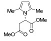 (S)-2-(2, 5-二甲基-1H-吡咯-1-基)丁二酸二甲酯(2c):黄色固体; ee > 99%[HPLC测定, 手性OD柱[V(正己烷):V(异丙醇)=95:5, 1.0 mL/min, λ=254 nm]; Rf=0.53 [V(石油醚):V(乙酸乙酯)=3:1]. m.p. 236.0~238.2 ℃; [α]D25-8.55 (c=1.0, CHCl3); lH NMR (500 Hz, CDCl3) δ: 2.23 (s, 6H), 2.23 (d, J=6.1 Hz, 6H), 3.18 (dd, J=8.1, 16.7 Hz, 1H), 3.72 (s, 3H), 3.76 (s, 3H), 5.39 (dd, J=6.4, 7.8 Hz, 1H), 5.80 (s, 2H); 13C NMR (125 MHz, CDCl3) δ: 12.5, 29.4, 36.1, 51.7, 52.8, 77.0, 106.6, 127.7, 170.4; FT-IR (KBr) v: 2951, 2739, 2604, 2497, 1739, 1524, 1438, 1277, 757 cm-1; ESI-MS m/z: 239 [M]+; HRMS (ESI) calcd for C12H17NO4 239.1158, found 239.1155.