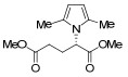 (S)-2-(2, 5-二甲基-1H-吡咯-1-基)戊二酸二甲酯(2d)[27]:黄色油状物; ee > 99% [HPLC测定, 手性OD柱[V(正己烷):V(异丙醇)=95:5, 1.0 mL/min, λ=254 nm]; Rf=0.36 [V(石油醚):V(乙酸乙酯)=3:1]. [α]D25-49.6 (c=0.5, CHCl3); lH NMR (500 MHz, CDCl3)δ: 2.15 (s, 6H), 2.20~2.29 (m, 3H), 2.52~2.59 (m, 1H), 3.64 (s, 3H), 3.73 (s, 3H), 4.86 (dd, J=5.8, 9.9 Hz, 1H), 5.77 (s, 2H).