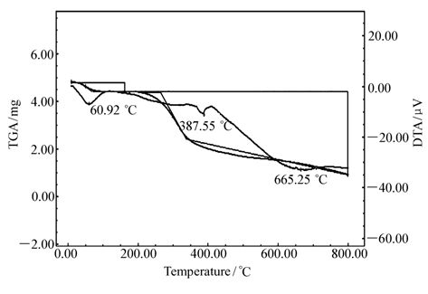 图 5为碳酸钙分散麦醇溶蛋白的TGA曲线。 由图 5可知,麦醇溶蛋白在44.73 ℃处失水吸热,失重约1.786%;185.48 ℃处开始熔融并发生分解,386.41 ℃处主链开始断裂,失重约11.652%,其中包含麦醇溶蛋白和碳酸钙中的少量结晶水;最后在728.87 ℃处为碳酸钙分解,失重约38.889%。 通过计算,9 g CaCO3分解产生3.96 g CO2,占总质量的39.6%,与失重的比例大致相当。