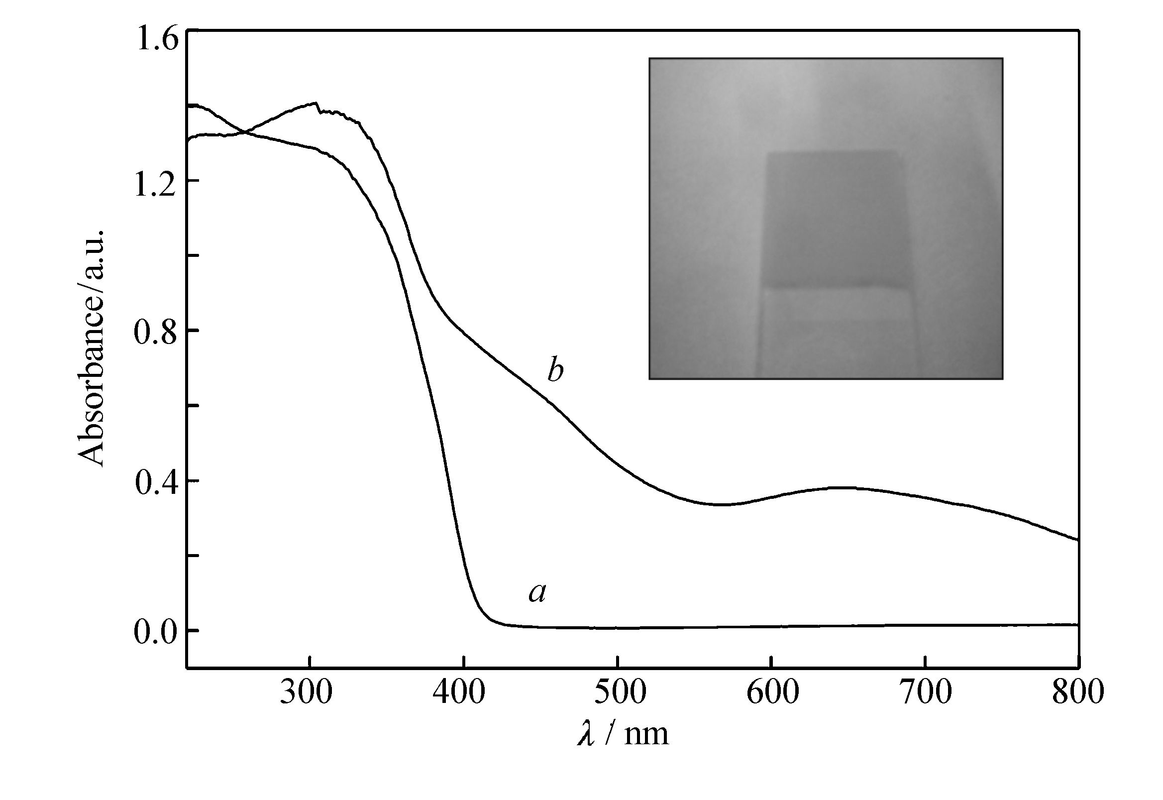 用溶胶-凝胶提拉法制备的PW11Cr/TiO2膜(5 g剂量PW11Cr),其外观均匀,呈黄绿色(见图 1插图),与PW11Cr阴离子水溶液的颜色相近,表明膜中含有PW11Cr组分。