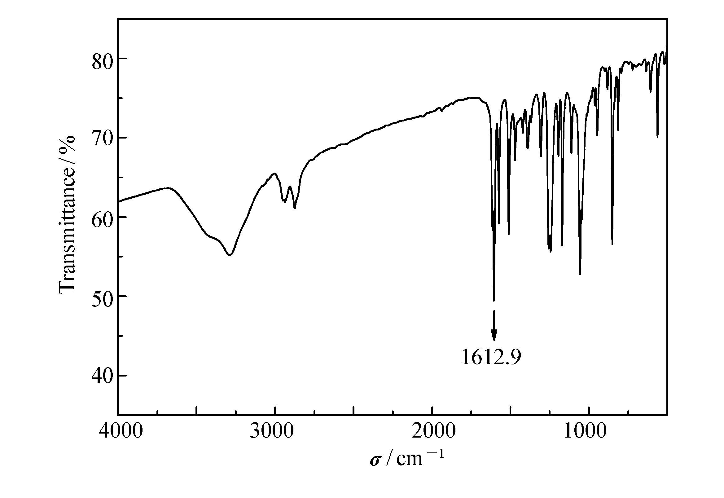 对苯二(对苯丙氧基醇)亚胺的红外光谱谱见图 2。 3290 cm-1处为醇羟基的吸收峰;2936、2874 cm-1处为亚甲基碳氢伸缩振动吸收峰;1612 cm-1处为碳氮双键(C=N)吸收峰,说明亚胺键的存在;1604~1421 cm-1区内为苯环骨架振动吸收峰;1305~1244 cm-1区内和1194~1045 cm-1区内为醚键伸缩振动吸收峰。