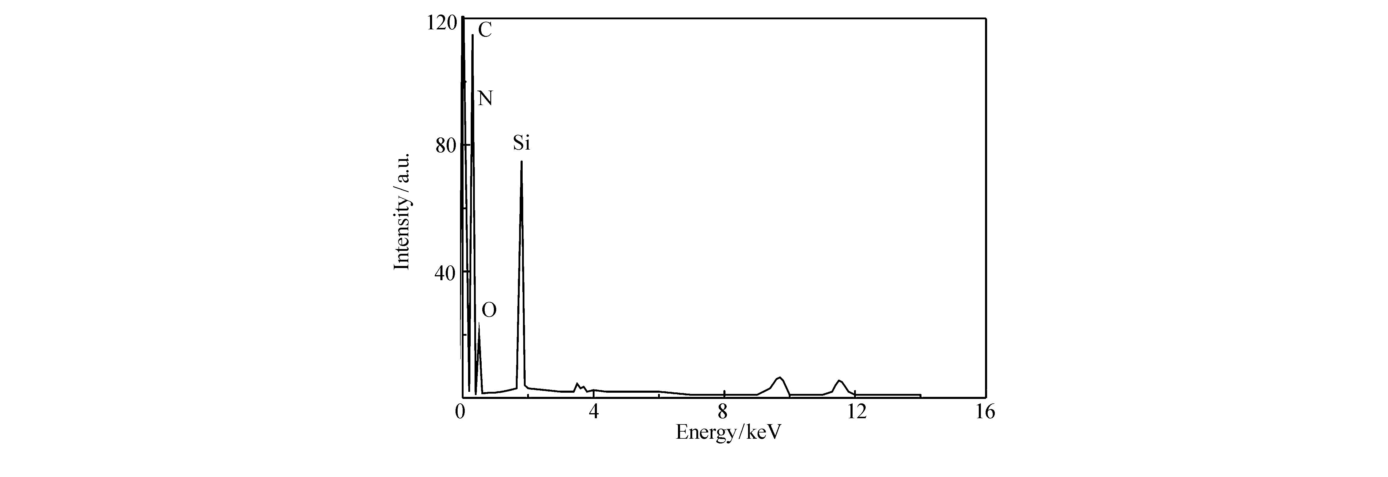 见图 7为席夫碱型硅氧烷聚氨酯液晶聚合物的X射线能量色散分析谱图,可以看出其元素组成有C、O、N、Si元素,其质量分数分别为62.53%、8.34%、16.55%、12.59%,这与该物质元素组成含量相似。