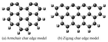 研究表明, 焦炭主要是由12-25个碳原子簇构成的大型芳香族环型结构组成[22], 其中,锯齿(Zigzag)型和扶手(Armchair)型的焦炭表面因具有较强的反应活性, 常被用于焦炭反应机理研究[23-25]。余岳溪等[16]采用Armchair模型, 成功揭示了煤焦异相还原N2O的反应机理; 张秀霞等[13, 14]使用Zigzag模型, 完善了N2O在异相生成及还原的反应理论。Espinal等[26]同时研究了H在Zigzag与Armchair两种焦炭结构上反应生成碳氢化合物的反应机理, 经实验验证, 其计算结果与实验结果吻合良好。综上, 本研究选取Armchair与Zigzag两种焦炭表面作为计算模型, 结构见图 1