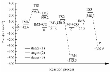Figure 2  Potential energy surface changes in homogeneous NO-CO reactions