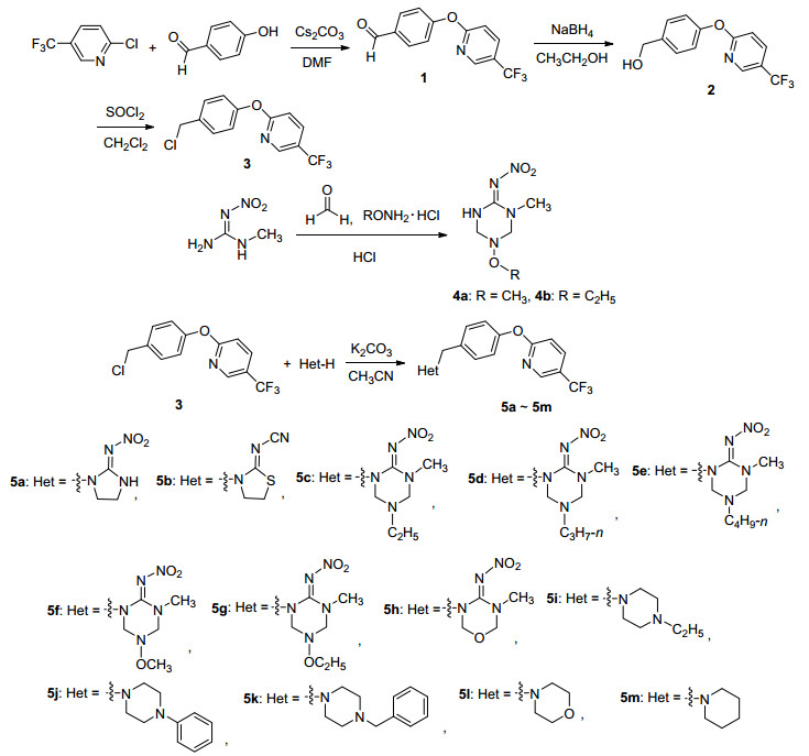 Table 2. Insecticidal and acarcidal activities of target compounds 5a~5m at 200 μg/mL