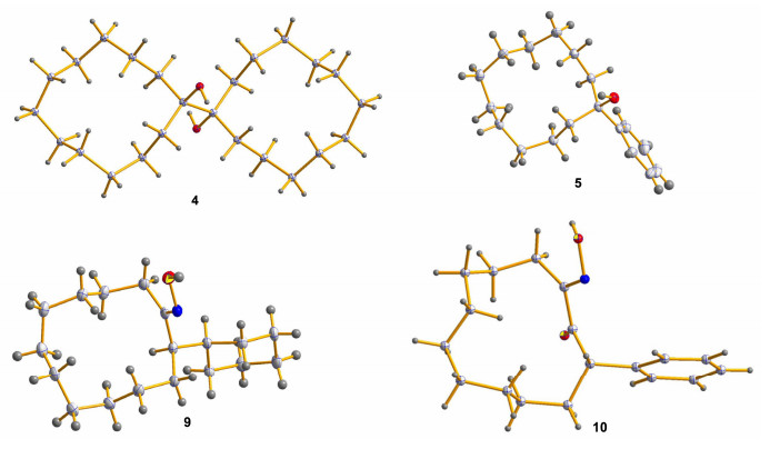 Table 2. The torsional angles (°) in the crystal structures of cyclododecane, cyclododecanone, 4, 5, 9and 10