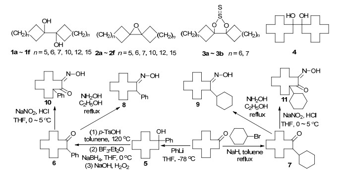 3.2.3 3-苯基-1, 2-环十二酮单肟(10)和3-环己基-1, 2-环十二酮单肟(11)的合成