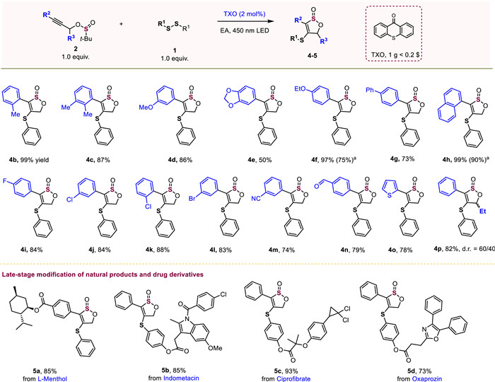 Citation: Yuanyuan Zhao, Zhiming Zhu, Liang Li, Bingyao Shi, Ziyang Li, Yuyang Huang, Lijun Jiang, Chao Shu. Photoinduced site-selective thiosulfinylation of alkynols for the synthesis of oxathiolene oxides[J]. Chinese Chemical Letters, ;2025, 36(10): 110900. doi: 10.1016/j.cclet.2025.110900 shu