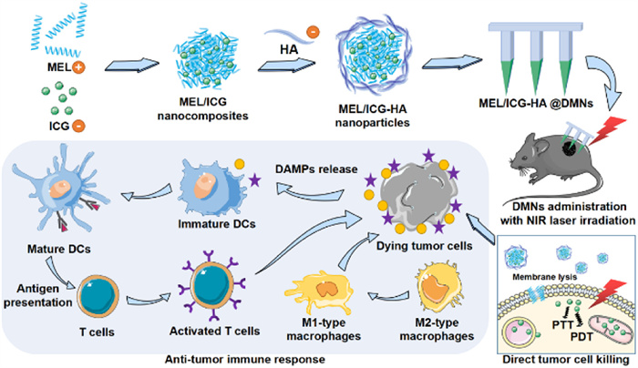 Dissolving microneedle-assisted in situ cancer vaccine combined with cytolytic peptide for anti-melanoma immunotherapy