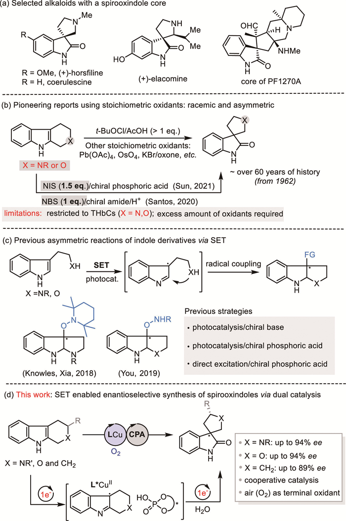 Single-electron transfer enables enantioselective synthesis of spirooxindoles via dual copper and phosphoric acid catalysis