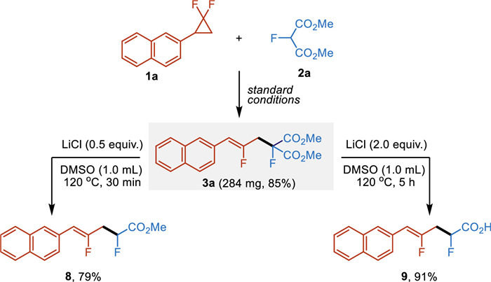 Citation: Junqi Su, Wenhao Liu, Jianjun Wang, Weifen Luo, Yangyang Ma, Leiyang Lv, Zhiping Li. Palladium-catalyzed ring-opening defluorinative cross-coupling of gem-difluorocyclopropanes with fluoromalonates or fluorobis(phenylsulfonyl)methane[J]. Chinese Chemical Letters, ;2026, 37(3): 111288. doi: 10.1016/j.cclet.2025.111288 shu