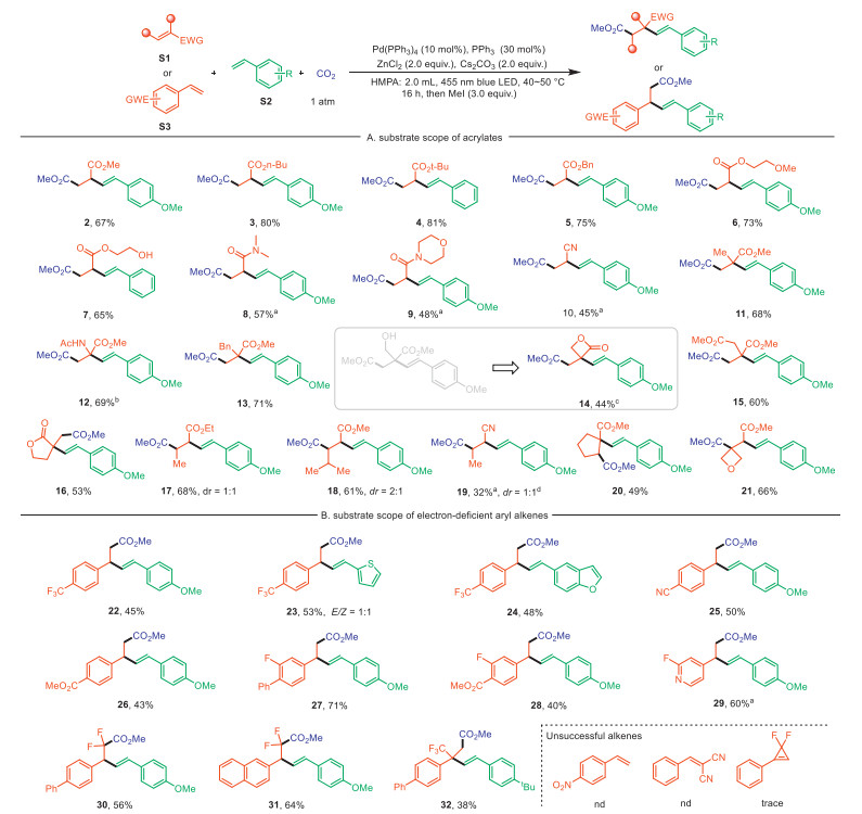 Citation: Jie Zhou, Luping Hu, Rui Wang, Ruijie Wang, Jun Xu, Huajian Xu. Three-component alkenylcarboxylation of two distinct alkenes with CO2 via photoinduced palladium catalysis[J]. Chinese Chemical Letters, ;2026, 37(4): 111304. doi: 10.1016/j.cclet.2025.111304 shu