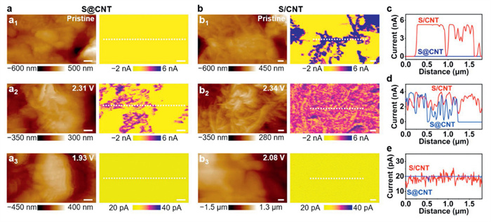 Direct visualization of the dynamic evolution of sulfur cathodes in Li–S batteries via in situ AFM