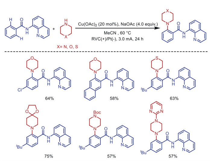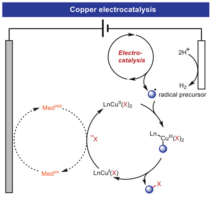The combination of electrochemistry and metal catalysts has been a popular research topic in the field of organic synthesis due to the abundance and controllable valence states of transition metals, where electron transfer at the electrode produces catalysts with more valence states. Among these transition metal catalysts, electrochemical conversions catalyzed by inexpensive copper metals have received considerable attention. This article systematically investigated this field and reviewed the electrochemical copper catalytic methods applied in organic synthesis from the different activation modes of substrates, which can be broadly classified into the functionalization of C = C bonds, C−H bond activation, C−C and C−X bond activation, and so on.