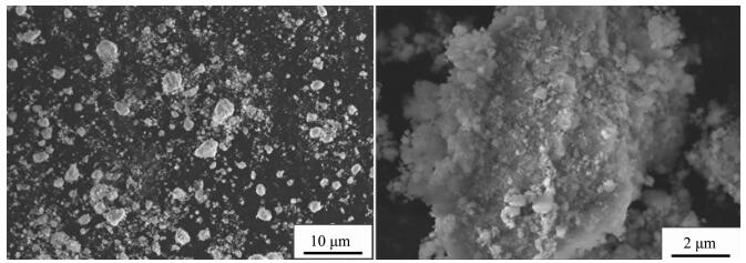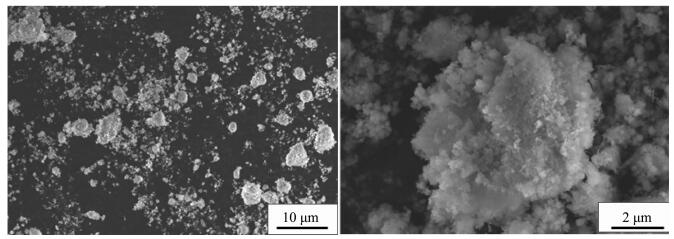 The agglomeration effect of particles plays a key role in the entire process of the crystal growth of spherical Ni(OH)2[1]. When the impeller line speed is 1 or 3 m·s-1, the flow velocity vector is low and flow field distribution is not uniform in the reactor, which leads to the results that the mixed uniformity of the reactant is low, therefore, agglomeration rate of Ni(OH)2 particles is low. So most of the nickel ion and ammonia ions does not occur the complexation reaction, but formed the nickel hydroxide precipitation. When the stirring paddle line speed increases to 5 m·s-1, the flow velocity vector becomes larger in the reactor, and the stirring circulation dead range is narrow, the flow field distribution is more uniform, so the mixed uniformity of the complexing agent and reactant improved, and more nickel ions complexation reacts with ammonia ions, which lead to slow rate of crystal nucleation, and to increasing crystal aggregation rate at the same time, particles agglomerate into many complete crystallization of large crystals with the same residence time. It can be concluded that as increasing flow velocity vector and uniform distribution in the reactor, the nickel hydroxide particles aggregation rate and sphericity also increases. When the stirring paddle line speed is 7 m·s-1, the distribution of flow field in the reactor and uniformity of velocity vector reach an ideal value, and the mixing of the complexing agent and the reactant reach an ideal state, and appropriate complexing reaction balance the crystal nucleation and crystal growth rate. At high speed flow field some large crystal aggregates collide and break to occur the secondary crystallization, and spherical nickel hydroxide crystals with uniform size and high degree form. It is shown that in the reactor only flow velocity vector reach a fixed value, large particles of Ni(OH)2 crystal can lead to aggregation burst into the secondary crystallization, therefore, the crystal growth of uniformity is improved.