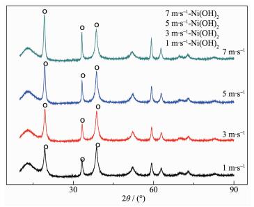 According to the industrial process of spherical Ni(OH)2 preparation, the chemical precipitation method was applied to the preparation of spherical Ni(OH)2 in this experiment. The reaction temperature of the system is controlled at 50~57 ℃, and the pH value is controlled at 11~11.7. A certain concentration of nickel sulfate solution, ammonia, sodium hydroxide solution in a certain proportion was filled to the bottom of the reactor. Under the same residence time, the sample is prepared under the stirring paddle line speed of 1, 3, 5 and 7 m·s-1, and then the sample is filtered and washed to dry, waiting for measurement.