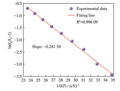 $ {I}_{T}=\frac{{I}_{0}}{1+A \exp[-\Delta E/(kT\left)\right]} $ (7) 图 17