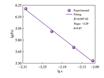 $ \lg\frac{I}{x}=K-\frac{\theta }{3}\lg x $ (4) 式中,I代表发射峰强度,x表示Tb3+的掺杂浓度,K为常数,θ=6、8、10(分别代表偶极-偶极、偶极-四极、四极-四极相互作用)。图 9展示了lg x与lg (I/x)之间的关系,通过拟合得到该直线斜率为-3.29,θ=9.87。θ值接近于10,表明Tb3+在该玻璃陶瓷中的浓度猝灭由四极-四极相互作用主导。