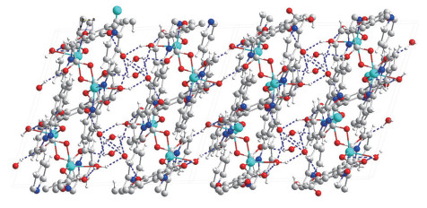 Figure 6  Three-dimensional hydrogen bond network of complex 2