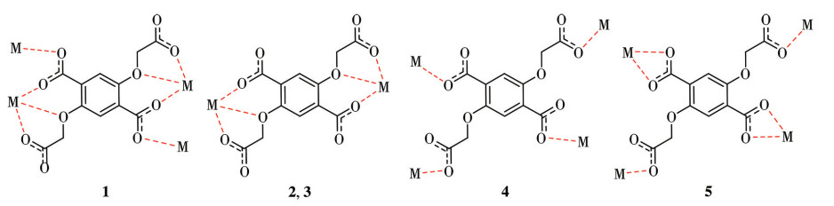 Figure 1  Coordination codes of the BCTA4- ligand in complexes 1-5