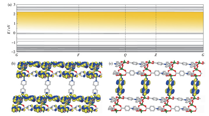 图 3  化合物1的能带结构(a)、HOMO图(b)和LUMO图(c)