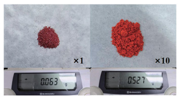 Scale-up synthesis of PTC-378. PTC-101 (800 mg, 0.02 mmol) and magnesium acetate (400 mg, 0.282 mmol) were dissolved in 60 mL of H2O/1, 4-dioxane (1∶2, V/V) mixed solvents. Then, 10 mL of ethanol solution containing 200 mg of tipa was added. The mixture was heated at 80 ℃ for 3 d, and red block crystals of PTC-378 were obtained (Fig.1). Yield: ca. 527 mg.