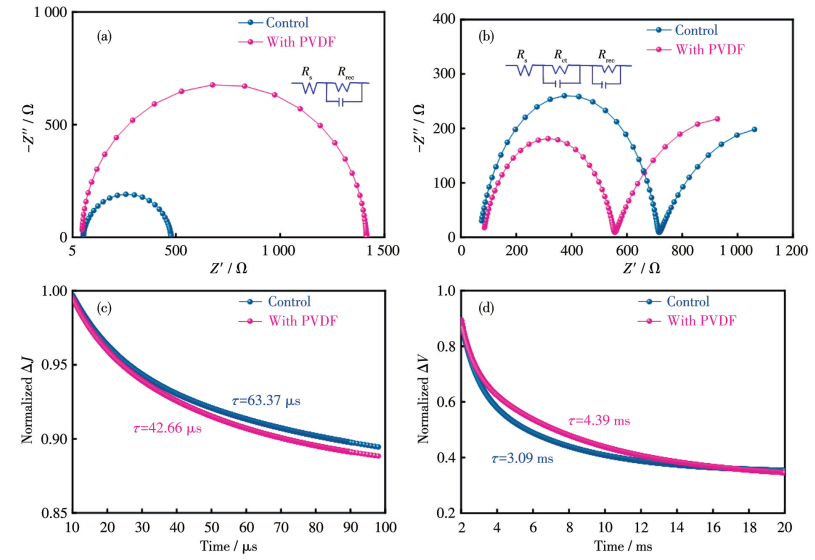 PSC Rs / Ω Rct / Ω Rrec / Ω Control 74.77 641.19 687.57 With PVDF 84.97 471.57 740.84 -