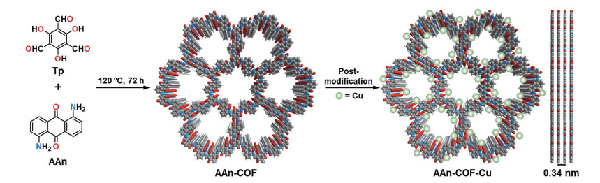 Figure 9 Schematic of the synthesis and structure of AAn-COF-Cu[113]