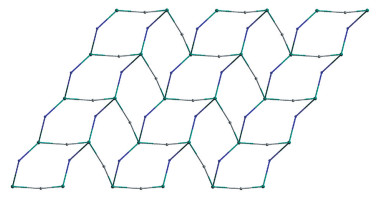 Figure 9  Topological representation of a 4,2,2-connected network with a sql topology viewed along the a-axis