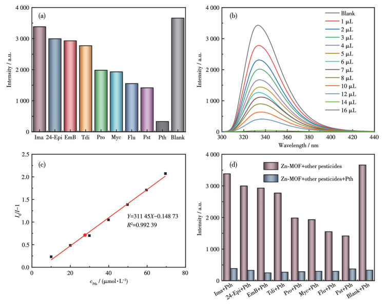 Highly sensitive and multi-response Zn-MOF fluorescence sensor: Design, synthesis, and detection of 4-nitrophenol, Cu2+, and pyrimethanil