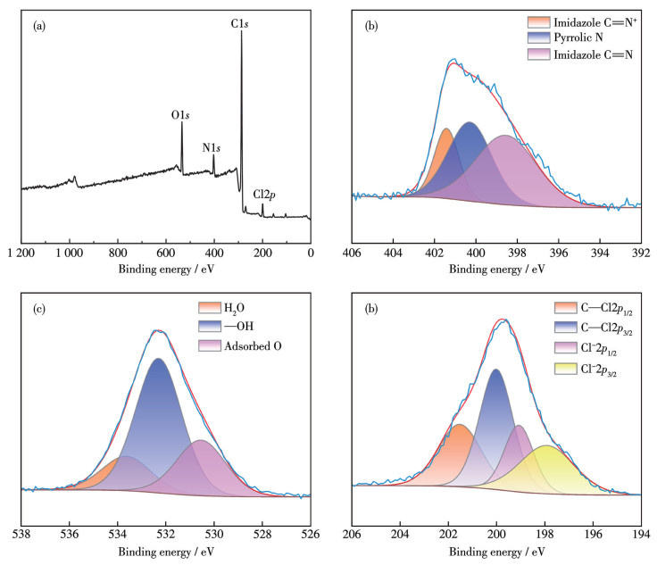 Survey (a), N1s (b), O1s (c), and Cl2p (d).
