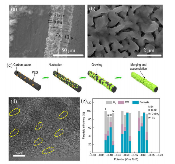 Hou, X.; Cai, Y.; Zhang, D.; Li, L.; Zhang, X.; Zhu, Z.; Peng, L.; Liu, Y.; Qiao, J. 3D core-shell porous-structured Cu@Sn hybrid electrodes with unprecedented selective CO2-intoformate electroreduction achieving 100%. J. Mater. Chem. A 2019, 7, 3197–3205.  doi: 10.1039/C8TA10650A