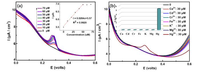 (a) Sadhukhan, M.; Barman, S. Bottom-up fabrication of two-dimensional carbon nitride and highly sensitive electrochemical sensors for mercuric ions. J. Mater. Chem. A 2013, 1, 2752–2756; (b) Afkhami, A.; Bagheri, H.; Khoshsafar, H.; Saber-Tehrani, M.; Tabatabaee, M.; Shirzadmehr, A. Simultaneous trace-levels determination of Hg(II) and Pb(II) ions in various samples using a modified carbon paste electrode based on multi-walled carbon nanotubes and a new synthesized Schiff base. Anal. Chim. Acta 2012, 746, 98–106; (c) Zhang, P. H.; Dong, S. Y.; Gu, G. Z.; Huang, T. L. Simultaneous determination of Cd2+, Pb2+, Cu2+ and Hg2+ at a carbon paste electrode modified with ionic liquid-functionalized ordered mesoporous silica. Bull. Korean Chem. Soc. 2010, 31, 2949–2954.