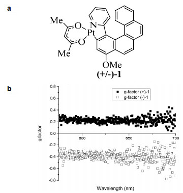 Brandt, J. R.; Wang, X.; Yang, Y.; Campbell, A. J.; Fuchter, M. J. Circularly polarized phosphorescent electroluminescence with a high dissymmetry factor from PHOLEDs based on a platinahelicene. J. Am. Chem. Soc. 2016, 138, 9743-9746.  doi: 10.1021/jacs.6b02463