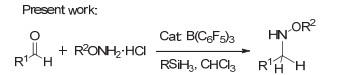 Reductive Amination by One Pot Reaction of Aldehydes and Alkoxyamines Catalyzed by B(C6F5)3