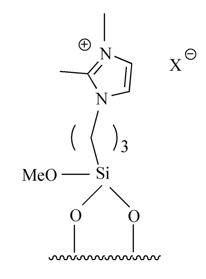 离子液体(Ionic liquids,ILs)又称室温离子液体(Room temperature ionic liquids,RTILs),一般由不对称的大体积阳离子和小体积阴离子组成,是一种在室温或者接近室温(低于100℃)时完全以离子状态存在的有机液体物质,具有传统化学试剂所不可比拟的优点,比如粘度大、蒸汽压低、不易挥发、稳定性好、环境友好、设计灵活等特点,因此,可以替代传统的挥发性有机溶剂用于萃取剂、致孔剂、介质、各种微萃取技术中的溶剂[13~17]。近年来,ILs作为吸附材料被进一步开发应用于涂层研究。由于ILs结构中可以引入各种取代基,从而增强了ILs涂层和目标分析物之间的相互作用,所以,ILs作为SPME涂层吸附剂对目标分析物展示出很高的选择性[18],从而引起学术界的关注。